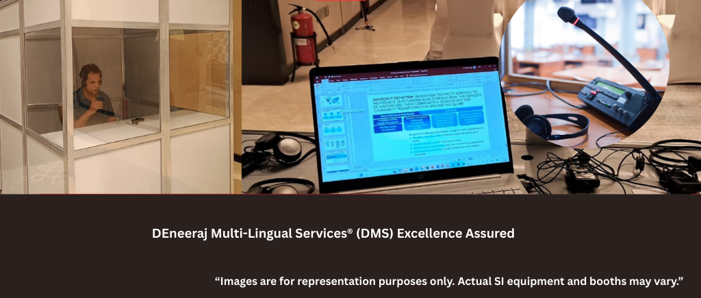 At DEneeraj Multi-lingual services® (DMS)’s we offer Interpreting services with equipment in India.
